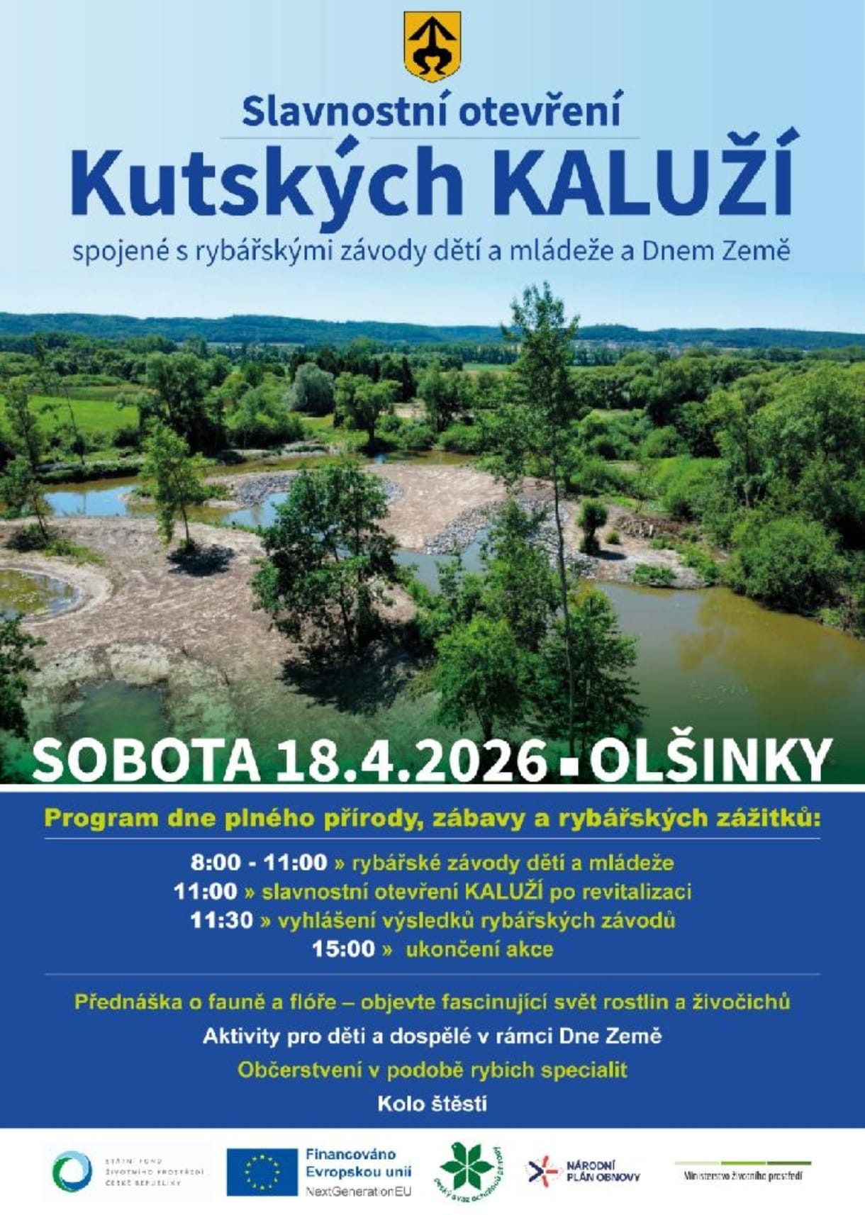 V sobotu 18.4.2026 proběhne slavnostní otevření Kutských kaluží po rozsáhlé revitalizaci.
